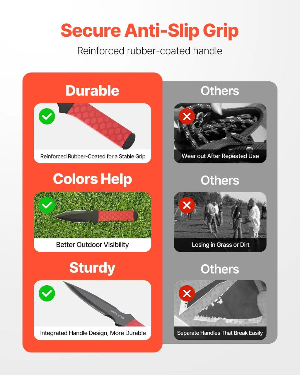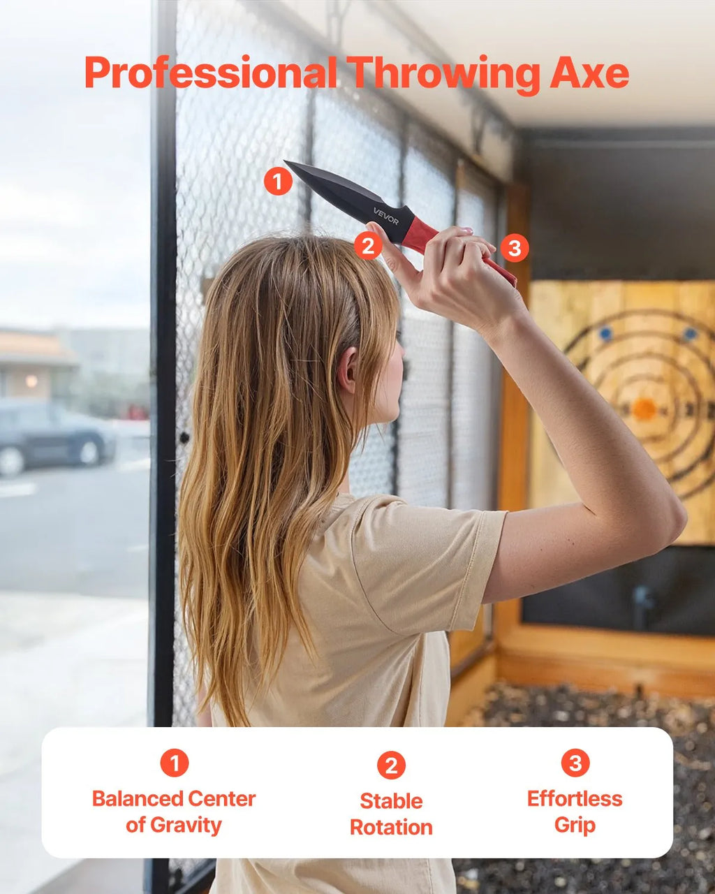 The VEVOR Throwing Products Set includes six durable 8.9-inch throwing darts designed for precision, balance, and outdoor entertainment. Made from high-quality 3Cr13 stainless steel with a sleek black surface finish, these darts provide excellent durability and reliable performance for target practice and recreational competitions. Each dart comes with a protective black nylon sheath for safe storage and transport. Perfect for backyard games, camping trips, and skill training, this throwing dart set also makes a great gift for outdoor sports enthusiasts.