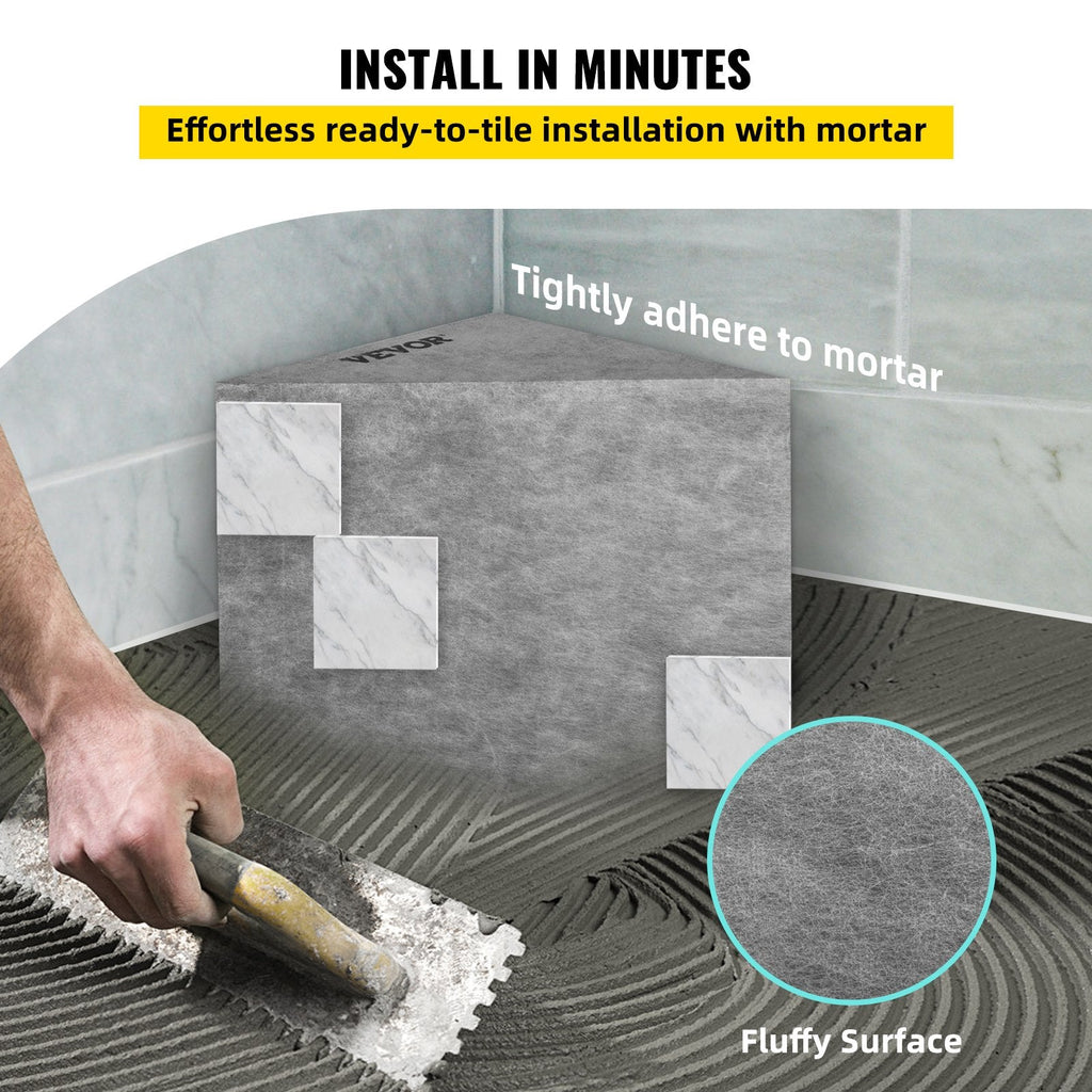The VEVOR Tile Shower Seat offers a durable, functional, and stylish solution for your bathroom, combining solid block construction with waterproof technology. This ready-to-tile, triangular board shower bench is designed to support up to 440 lbs, making it ideal for those seeking a sturdy and comfortable seating option. Made from EPS composite material and covered with a reliable PE membrane, this seat ensures 100% leak-proof performance. Its versatile, easy-to-install design makes it perfect for DIY bathroom projects, and it’s the ideal addition to any shower space. Whether you're looking to enhance your bathroom's aesthetic or create a comfortable showering experience, this seat provides reliable support and style.