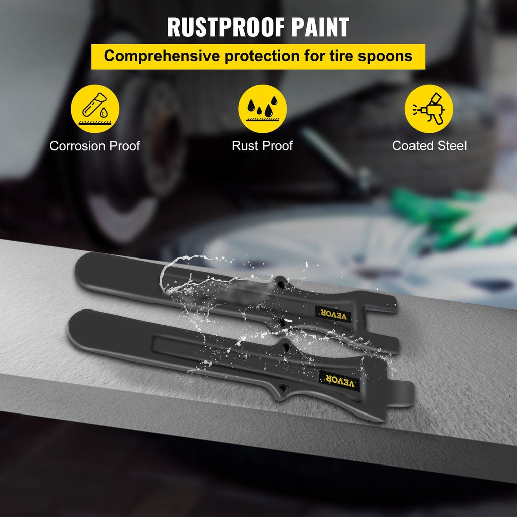 Make motorcycle tire changes easier and more efficient with the VEVOR Tire Changing Tool Set. This set includes two 9.65-inch tire irons crafted from durable 40CR steel, ensuring strength and rust resistance for long-lasting use. Designed specifically as tire bead breakers, these black tire spoons offer ergonomic leverage to simplify the tough job of breaking tire beads and removing motorcycle tires. Whether you’re a professional mechanic or a dedicated rider, these heavy-duty tire levers provide reliable performance and ease of use every time.