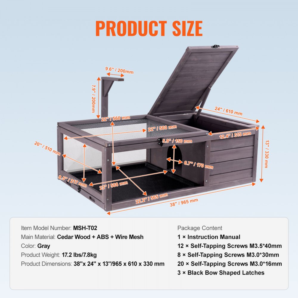 The VEVOR Tortoise Habitat Wooden Tortoise House offers a durable and spacious environment for your small animals, whether indoors or outdoors. With solid cedar wood construction, this two-room habitat provides your pets with plenty of space for exploration and comfort. The built-in light stand ensures your pets are well-lit, while the partitioned design allows for easy organization. This habitat is simple to assemble and clean, making it a perfect choice for tortoises, lizards, and other small pets.