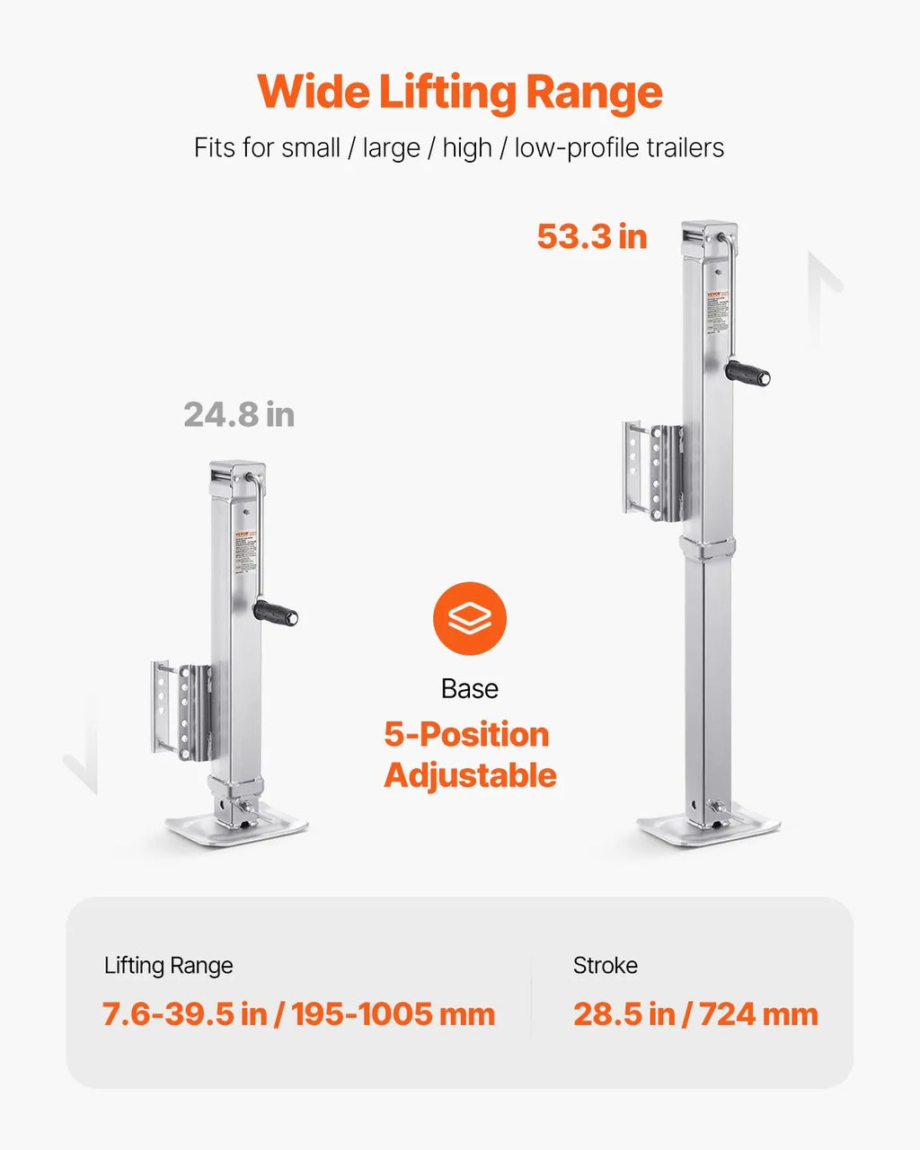 Large lifting range for compatibility with various trailers