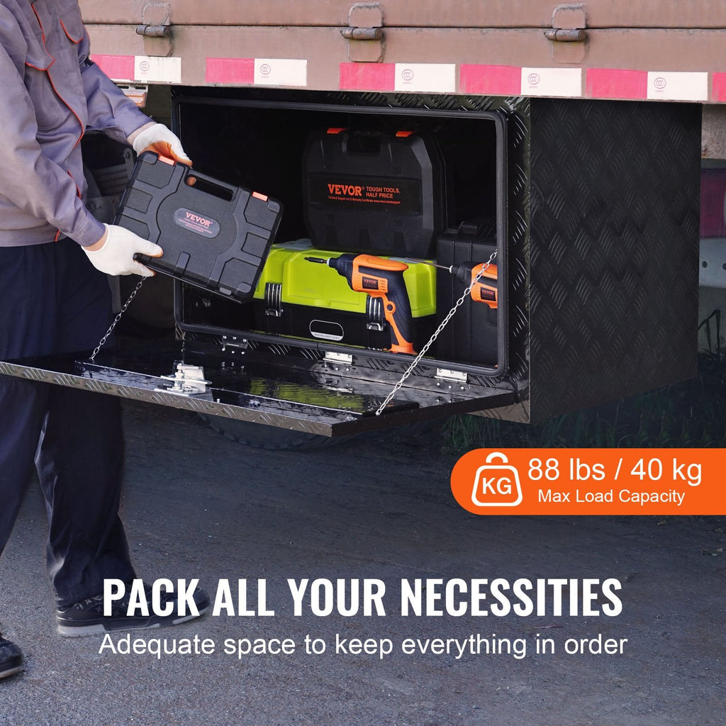 Keep your tools secure and organized with the VEVOR Underbody Aluminum Truck Tool Box. Designed for trailers, RVs, and large vehicles, this rugged storage solution offers excellent protection against rust and water. Featuring a high-strength aluminum construction, it provides both durability and theft-proof security. The box comes with hidden hinges and a T-shaped handle for easy access and additional security. With a spacious design, it’s perfect for storing essential tools and gear.