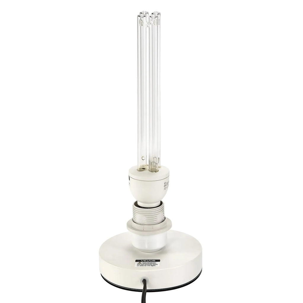 The VEVOR UV Light 25W Ultraviolet Lamp with Ozone Purifier combines UV-C and ozone technology to effectively sterilize and purify air and surfaces. Equipped with a premium quartz tube for extended lifespan, it offers 360° wide coverage for deep cleaning in various settings. The compact, portable design includes a convenient remote control with three timer settings, making disinfection simple and safe. Ideal for homes, offices, hospitals, and other environments requiring reliable germicidal solutions.
