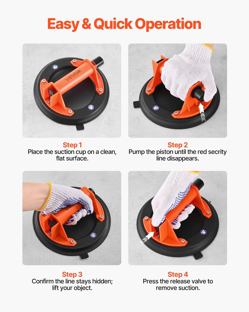 Handle heavy, smooth materials with confidence using the VEVOR 8-Inch Vacuum Suction Cup Glass Lifter. Designed for professional-grade lifting, this durable suction cup tool provides powerful holding force, ergonomic comfort, and reliable performance for glass, tile, granite, drywall, and more.