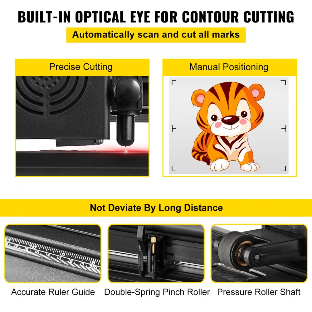 The VEVOR Vinyl Cutter 53 Inch Plotter Machine is a high-precision cutting solution designed for sign making and vinyl projects. Equipped with automatic paper feed and adjustable cutting speeds, it delivers smooth, accurate cuts up to 53.1 inches wide. Featuring an LED digital panel and automatic calibration, this vinyl cutter ensures ease of use and consistent performance. The flexible floor stand offers convenient positioning, while the included Signmaster software supports a variety of cutting languages. Its sturdy construction and multiple interface options make it ideal for professional and hobbyist use alike.