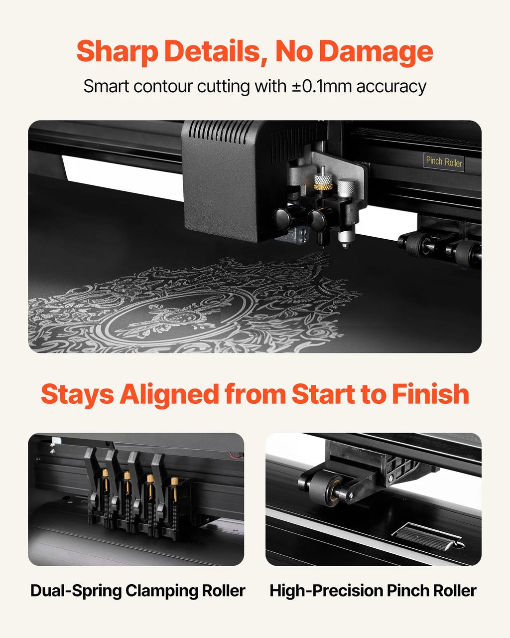 Precise Cutting: ±0.1 mm accuracy with intelligent contour detection and dual-spring pinch rollers ensures clean edges and stable media even during long cuts.