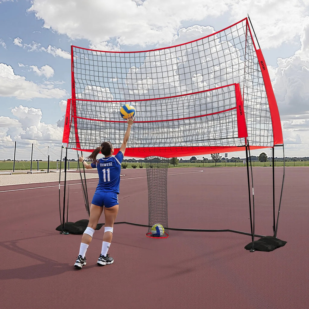 The VEVOR Volleyball Training Net System is designed to improve serving, passing, and hitting skills for players of all levels. Built with a durable net, steel frame, and fiberglass support structure, this training system offers stability and long-lasting performance during intense practice sessions. The adjustable height design allows athletes of different skill levels to train effectively. With quick setup and a portable structure, it’s ideal for both indoor gyms and outdoor courts, making practice more efficient without chasing stray balls.