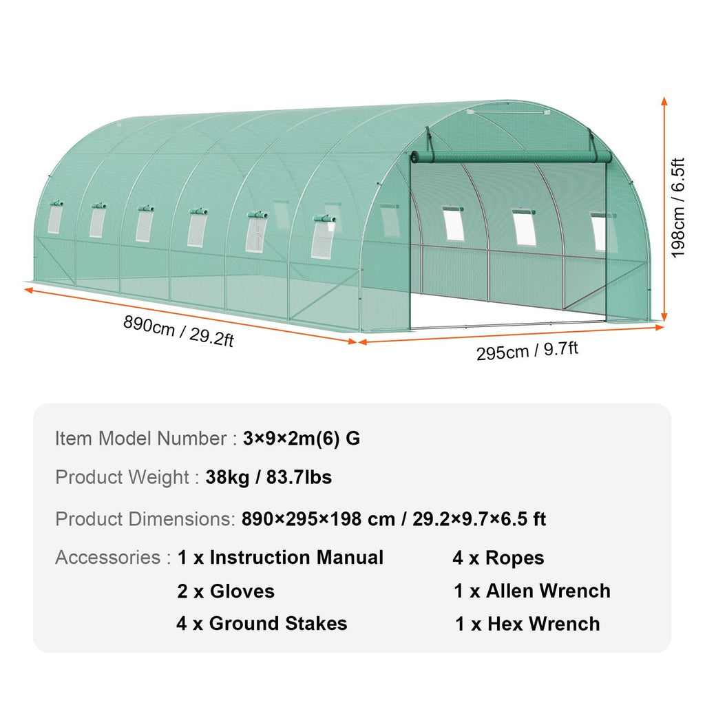Large Greenhouse: Spacious design (29.2 x 9.7 x 6.5 ft) offers plenty of room for multiple plants and garden projects.