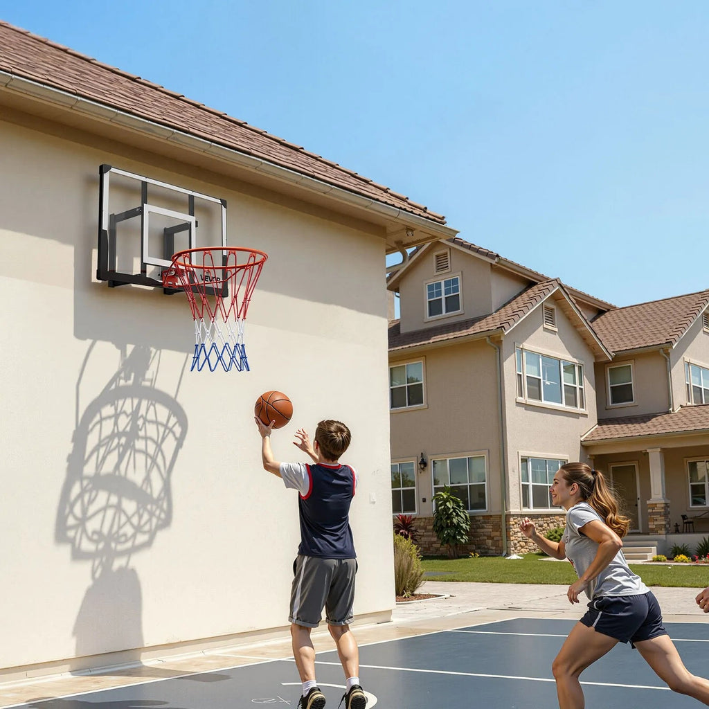 Indoor & Outdoor Use: Ideal for backyards, garages, gyms, or any wall-mountable space. Shatterproof backboard and adjustable height allow flexible setup for various players and environments.