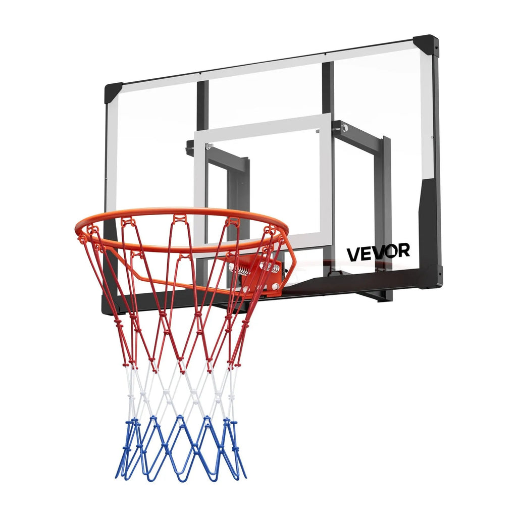 Bring the excitement of basketball to your home with the VEVOR Wall Mount Basketball Hoop. Featuring a 44-inch PC backboard, reinforced steel construction, and a thickened woven nylon net, this outdoor/indoor hoop ensures durable, professional-quality play for all skill levels. Perfect for backyard fun, training, or casual games.