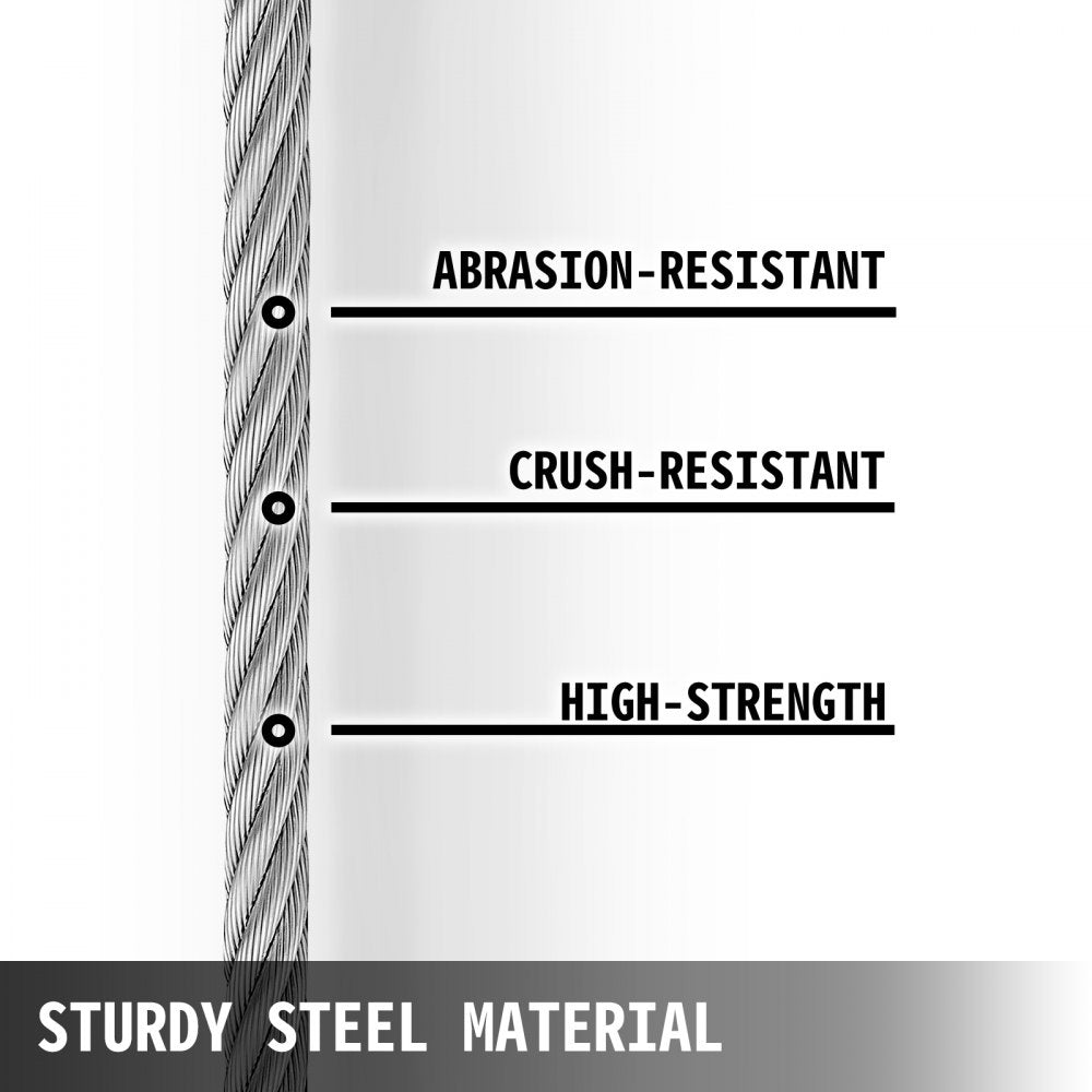 The VEVOR Winch Cable is a heavy-duty steel wire rope designed for reliable towing, lifting, and pulling applications. With a 4400 lbs capacity and a 50-foot length, this 3/8-inch cable features a tough steel core that enhances strength and durability. Equipped with a self-locking swivel hook, it ensures secure attachment and smooth operation. Ideal for trucks and off-road vehicles, this winch cable is built to perform under demanding conditions.
