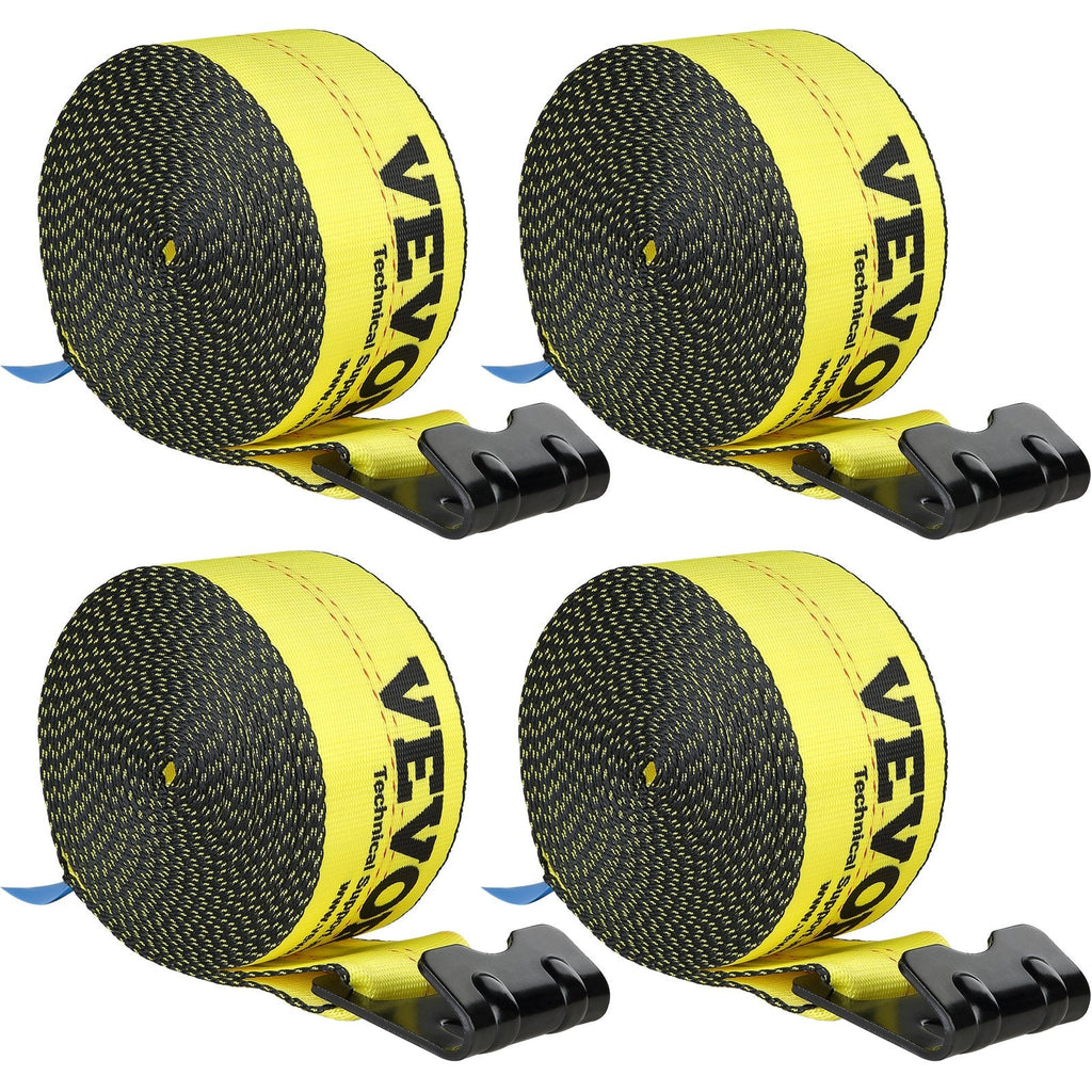 Secure heavy cargo with ease using the VEVOR 4" x 30' Winch Straps. Designed for professional-grade performance, each strap boasts a 6,000 lb working load limit and an impressive 18,000 lb break strength. Crafted from high-tensile polyester with carbon structural steel flat hooks, these straps are built to withstand tough environments—ideal for flatbed trailers, farm equipment, rescue operations, or tree savers. Travel with confidence knowing your load is locked down with strength and reliability.