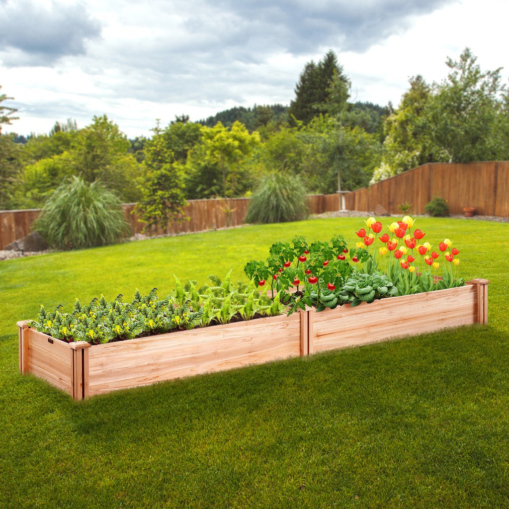 The VEVOR Wooden Raised Garden Bed Planter Box is designed to provide an ideal environment for growing flowers, vegetables, herbs, and more. Made from durable fir wood, this spacious garden bed offers ample space for your plants to thrive. Its simple, easy-to-assemble design makes it the perfect addition to any garden, patio, or balcony. The raised height ensures easier planting, while the innovative water drainage design helps maintain proper soil moisture. Whether you're a seasoned gardener or a beginner, this planter box will help you cultivate your own beautiful garden with minimal effort.