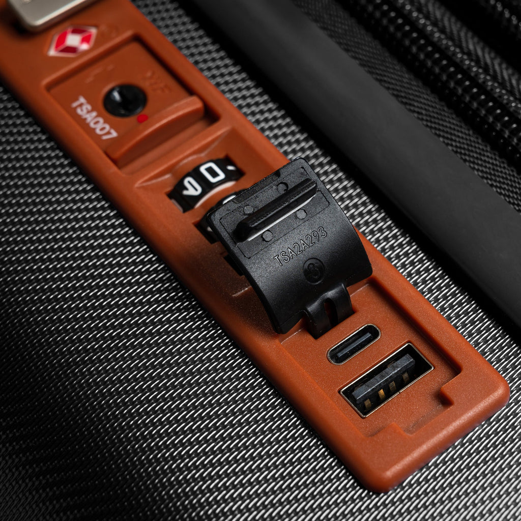 Built-in USB-A and USB-C ports in Carry-on for on-the-go charging