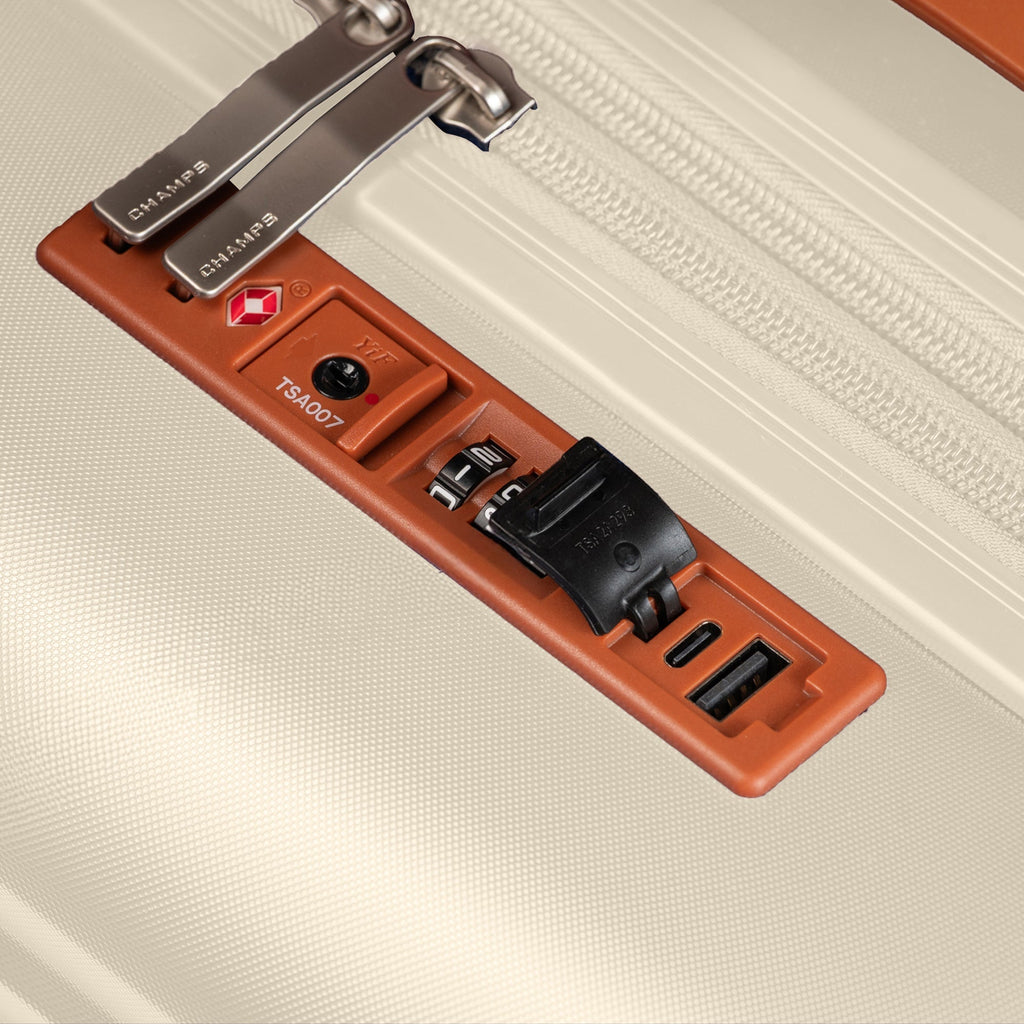Built-in USB port in Carry-on for convenient on-the-go charging