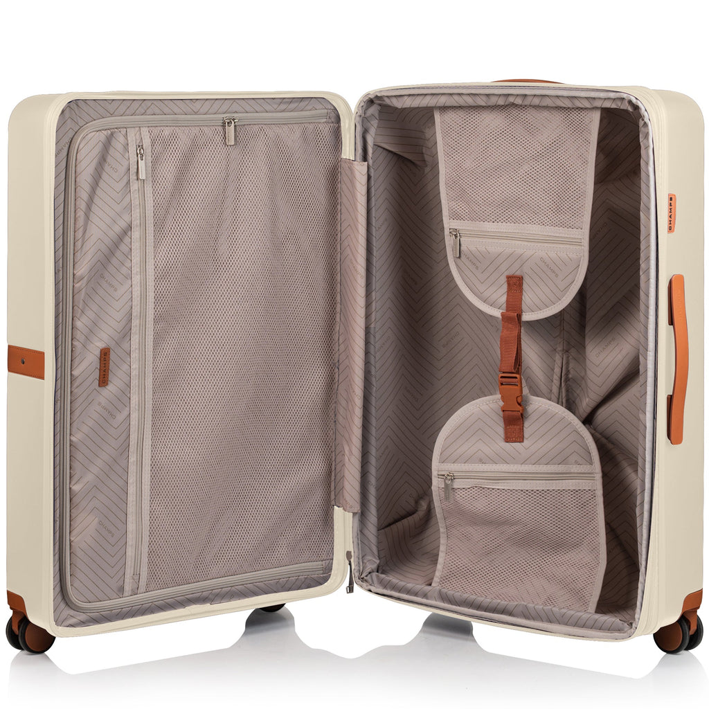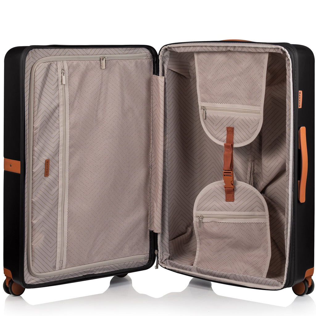The Vintage II Large Check-in Bag combines maximum packing capacity with durable, stylish design. Crafted from premium lightweight polycarbonate, it features a recessed TSA-approved lock, expansion capability, and smooth spinner wheels—perfect for long-haul trips, families, or those who love to travel in style.