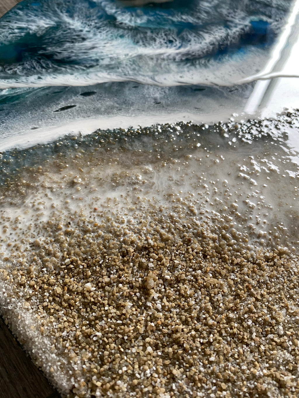 Design Theme: Deep ocean waves over textured sandy shoreline