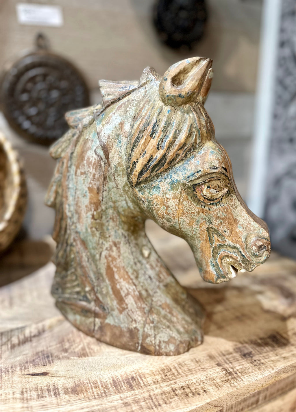 Add a timeless rustic charm to your home with this Wooden Horse Head sculpture. Carefully crafted with artistic detail, this decorative piece highlights the natural beauty and strength of the horse. Perfect as a statement accent for shelves, mantels, or tabletops, it brings a touch of sophistication and character to any interior space. A unique blend of artistry and craftsmanship, this horse head is ideal for lovers of equestrian style or rustic decor.