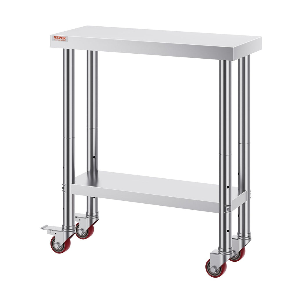 Upgrade your workspace with this sleek and durable Stainless Steel Work Table with Wheels, designed for both functionality and style. Measuring 30" x 12", this compact table is ideal for laundry rooms, kitchens, workshops, and utility areas. Constructed from non-magnetic stainless steel, it offers excellent resistance to corrosion and wear. The overshelf and 3-level height adjustment provide added flexibility, while the lockable caster wheels make it easy to move and secure in place. Whether you're organizing laundry, prepping meals, or tackling DIY projects, this table supports up to 700 lbs, making it a sturdy and reliable addition to any space.